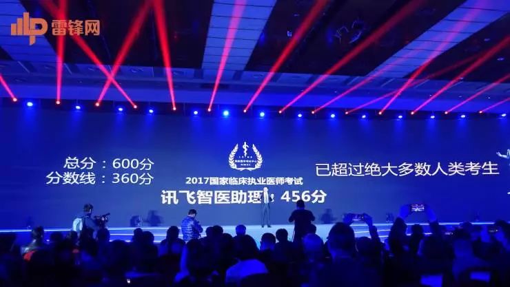 国家临床执业医师资格考试每年都举行,满分 600分,今年的分数线是 360,医疗专业的毕业生工作几年之后,通常都只有不到一半的人能通过考试。讯飞智医助理考了 456 分的高分,超过分数线 96 分。就在昨天,安徽省卫计委的领导进一步告诉我们,安徽省两万多考生,科大讯飞的智医助理名列前一百名。