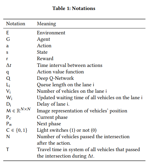 作者在现有研究方法的基础上提出了使用深度强化学习解决交通控制的方法,整体结构图如下:从图中可以看出右侧使我们熟悉的强化学习的模型结构。在此基础上定义了一些交通控制中的参数