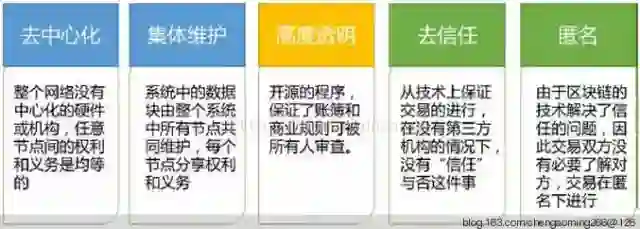 去中心化:区块链是一个由各矿工节点记账维持,并储存在全球范围内各个去中心化节点的公开账本,因为每个节点和矿工都必须遵循同一记账交易规则,而该规则基于密码算法而非信用,同时每笔交易需要网络内其他用户的批准,所以不需要一套第三方中介结构(比如说银行)或信任机构背书。在传统的中心化网络中,对一个中心节点(例如支付中介第三方)实行有效攻击即可破坏整个系统,而在一个去中心化的例如区块链的网络中,攻击单个节点无法控制或破坏整个网络,掌握网内50%的节点只是获得控制权的开始而已。