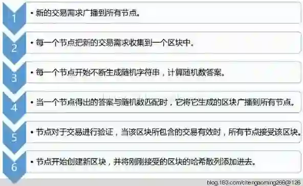 每个节点接收到交易信息以后,生成新的区块并计算该区块的随机数答案,最快得到答案的节点将促成这笔交易的实现,完成交易的区块记录,并将该区块广播至所有节点。同时该节点将有可能获得一枚新的电子货币作为奖励。由于其过程很像矿工挖矿,因此节点提供算力的过程也叫作挖矿。通过挖矿,可以强制性保证块链中的数据按时间顺序存储,保持比特币网络的中立性,且允许比特币网络上不同的计算机对系统状态达成一致。