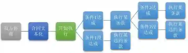 而复杂的条件控制能力就更常见了——合同中的违约条款就是条件控制能力。事件达成怎样,没有达成如何执行违约条款等,这些都需要合同拥有复杂的条件控制能力。