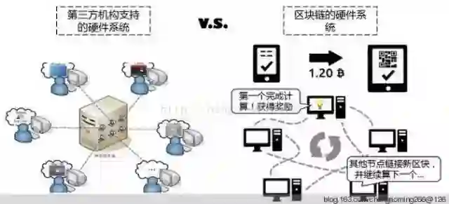 【下图】第三方机构支持的硬件系统与区块链硬件系统的对比