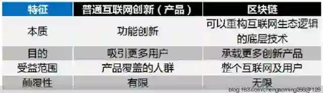 与之前国内外的一些互联网产品重视互联网思维在功能创新上的应用不同,区块链是从底层技术上对于互联网思维的一种应用,目的是从互联网的生态逻辑层面承载更多功能,而不是简单创造更好的用户体验吸引更多用户,颠覆性更强,受益范围更广。