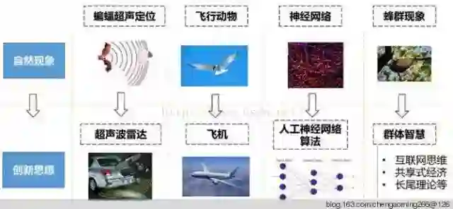 群体智慧就是这样一种大自然赋予的生命逻辑,群体通过一种简单的规则联系起来,每个个体看似微不足道,但是汇聚起来的智慧和力量却无比强大,往往强大到能够超越种群自身智力上或身体结构上的限制,整个系统的运行看似混乱却保持着惊人的和谐。长久以来,人们利用自然逻辑创造机器、输入机器、产生灵感的例子,已经不胜枚举,如根据蝙蝠超声定位发明了超声波雷达,根据鸟飞行的姿态发明了飞机等等,又如根据生物的神经网创造的人工神经网络,根据细胞的排列创造的元胞自动机等等。群体智慧同这些应用一样源于自然,不同的是,群体智慧更多的是一种创新的哲学,是“长尾理论”“共享式经济”“互联网思维”等思想和理论的基础:即去中心化,强调共享,强调群体自身的智慧与力量。