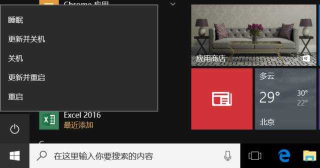 共有五个选项:睡眠、更新并关机、关机、更新并重启、重启。