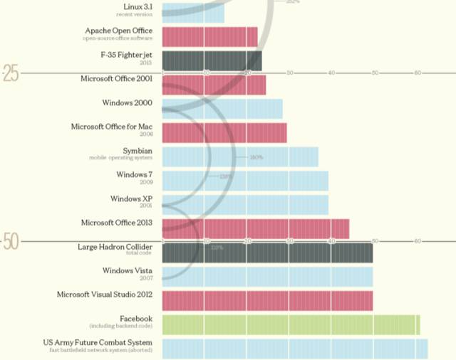 根据微软已公布的资料显示,Windows 98有1500万行代码,Windows XP有3500万行代码,Windows Vista有5000万行代码,Windows 7有5000万行代码。