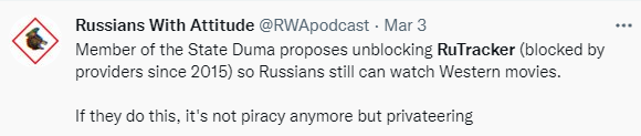 @Russians With Attitude:“如果他们这样做,那就不是盗版了,而是私掠。”