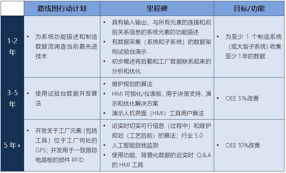 根据以上被确定的最为重要的挑战和期望的能力,优先制定了三种路线图以支持PHM制造工艺技术和指标,同时有助于将PHM的发展集成到智能制造的流程中。