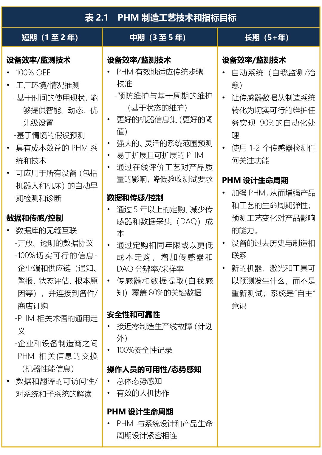 确定的支持PHM的一系列指标。指标的主要特征包括以下测量: