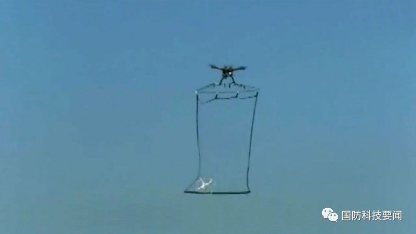 ▲NowThisFuture视频截图,显示东京警视厅使用多旋翼机在半空中捕获非法无人机