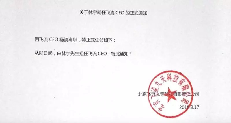 林宇破开箱子后,将里面的公章取出,到北京招商行朝外支行要求把飞流法人变更成他本人,并利用公章伪造了飞流移动CEO任命书,将前飞流CEO林骁变更为林宇。