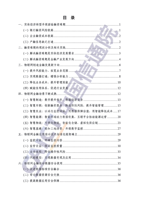 报告提出了物联网金融在智慧制造、智慧车联、智慧农业、智慧能源、智慧物流、智慧基建的6大应用场景。同时,确立了物联网金融标准的框架,明确了监控对象、监管设备、业务流程、风控模型等具体内容。