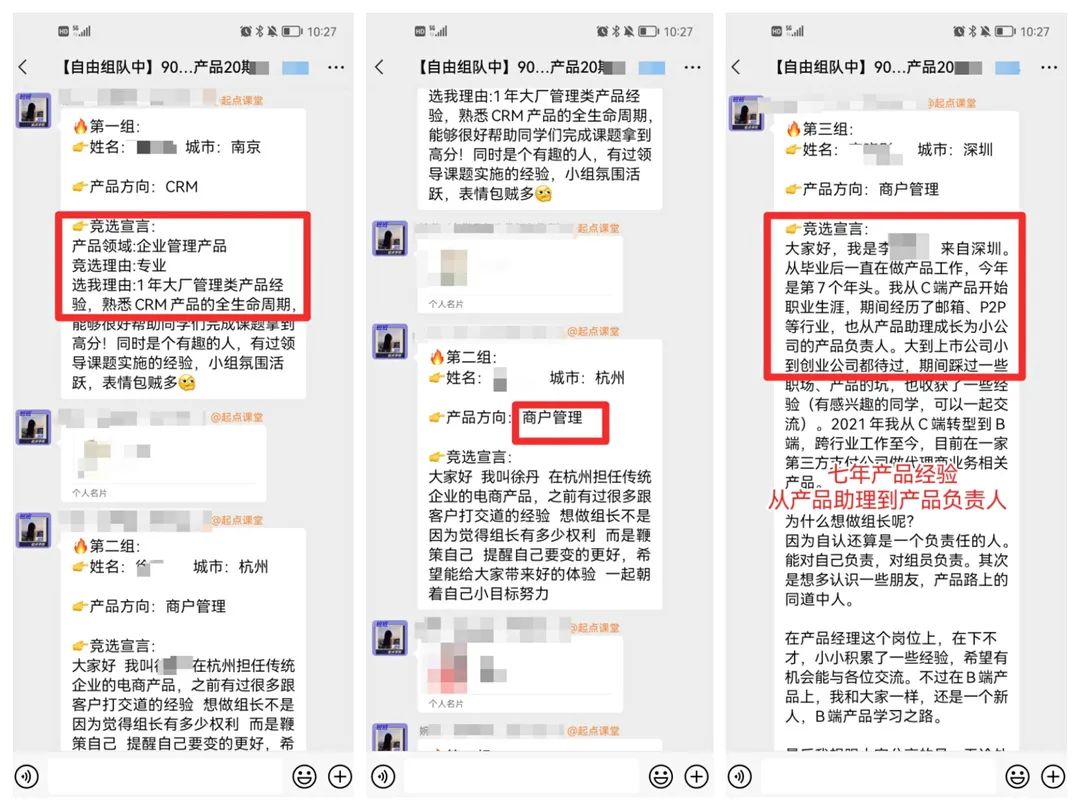 课程考虑到B端业务场景的复杂性,除了日常答疑,每周四还配有产品业务咨询会,授课老师会在班级群里给大家专门开小灶,通过语音直播的形式,帮助大家解决在工作中的具体产品/业务问题~
