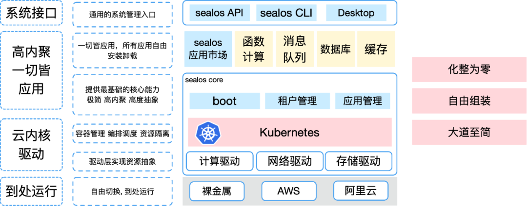 实现层面,core 是非常内聚的,意味它向下仅提供云内核生命周期管理,如安装 / 伸缩 / 升级 / 清理,向上做好应用的打包与管理即可。