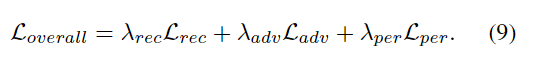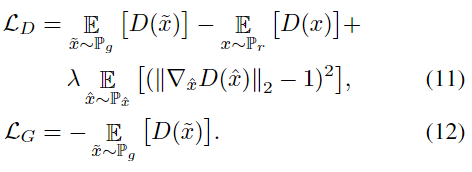 生成对抗网络被证明可以有效生成清晰且视觉上令人满意的图像。在这里采用WGAN-GP ,该算法提出了梯度范数的二次化处理来代替权重削减,从而得到更稳定的训练和更好的性能。这种损失可以解释为: