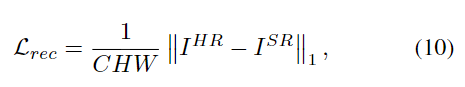 其中(C,H,W)是高分辨率图HR的大小。使用了L1loss,与L2loss相比,L1loss被证明在性能上更加清晰,并且更易于收敛。