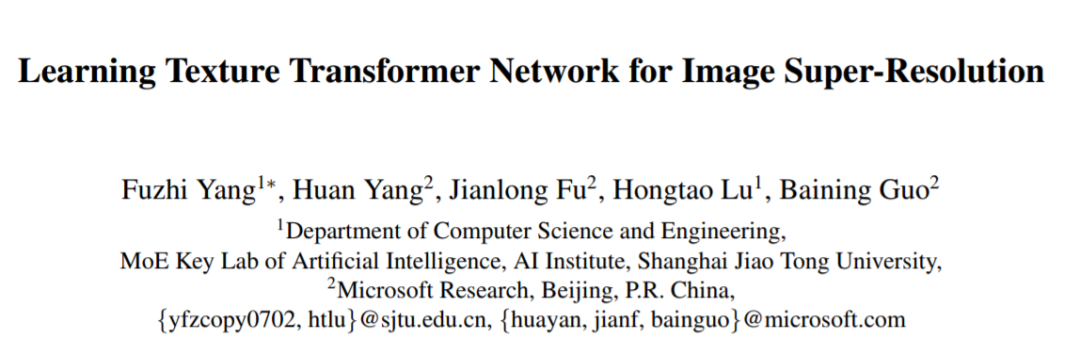 论文地址:http://openaccess.thecvf.com/content_CVPR_2020/papers/Yang_Learning_Texture_Transformer_Network_for_Image_Super-Resolution_CVPR_2020_paper.pdf