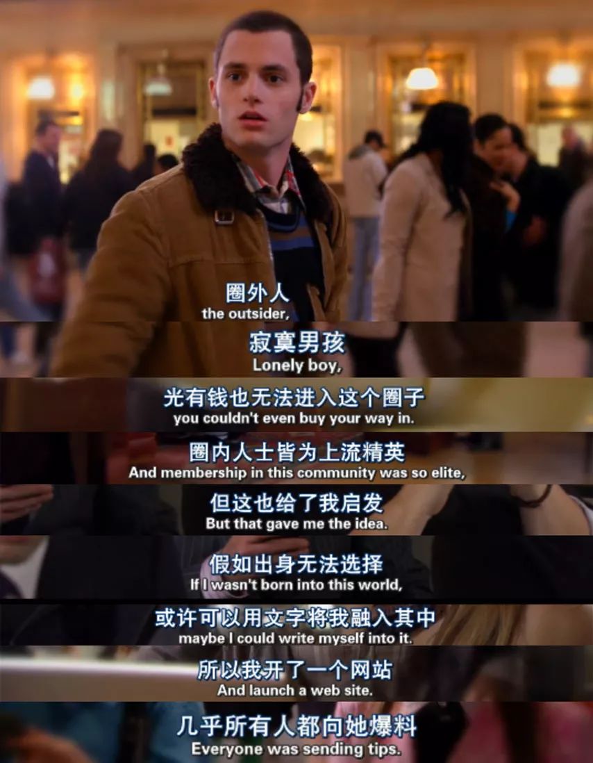 片头这个魅惑的问题,或许是《绯闻女孩》最让人印象深刻的一句台词。如果你还记得大结局,剧中那个神秘的、无处不在、自称绯闻女孩的博主……其实是孤独男孩,丹·汉弗瑞(Dan Humphrey)。他一直是个局外人,直到溜进了上东区的上流社会。