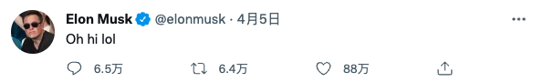 截至目前,马斯克并未对外公开过入股 Twitter 的具体原因,但是其发布的一条“Oh hi lol”也难掩其开心的心情。