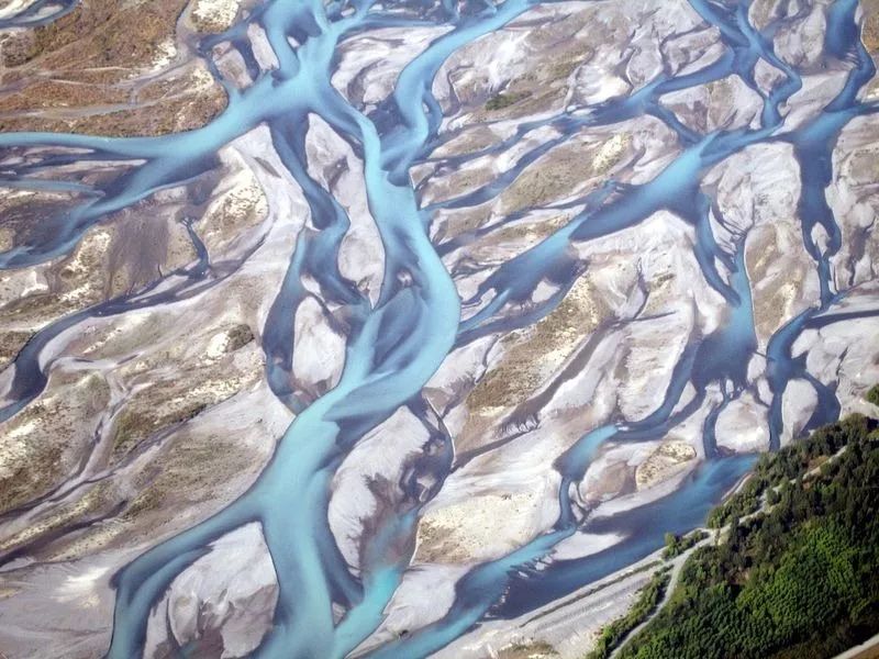 上面是新西兰的怀马卡里里河(Waimakariri River)。
