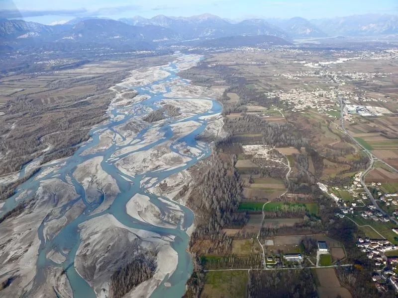 上面是意大利东北部的塔利亚门托河(Tagliamento River)。