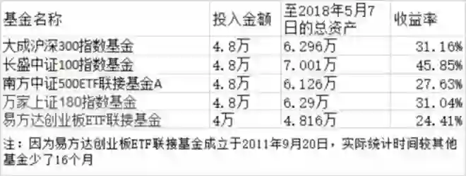 4、因为投资时间要长、不择时、最好有一定波动性这几个因素,低成本、不用担心基金经理换人的指数基金是比较好的选择。