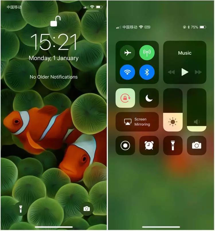 因为刘海的存在,用户只能从屏幕上方两侧看到时间、信号和电池图标,完全找不到想要的电池具体电量、系统代理是否打开、蓝牙是否在工作(这一点在配对蓝牙设备、和 Mac 之间进行 handoff 互通操作和使用 airdrop 时尤其重要)以及数据有没有在连接等一系列信息。