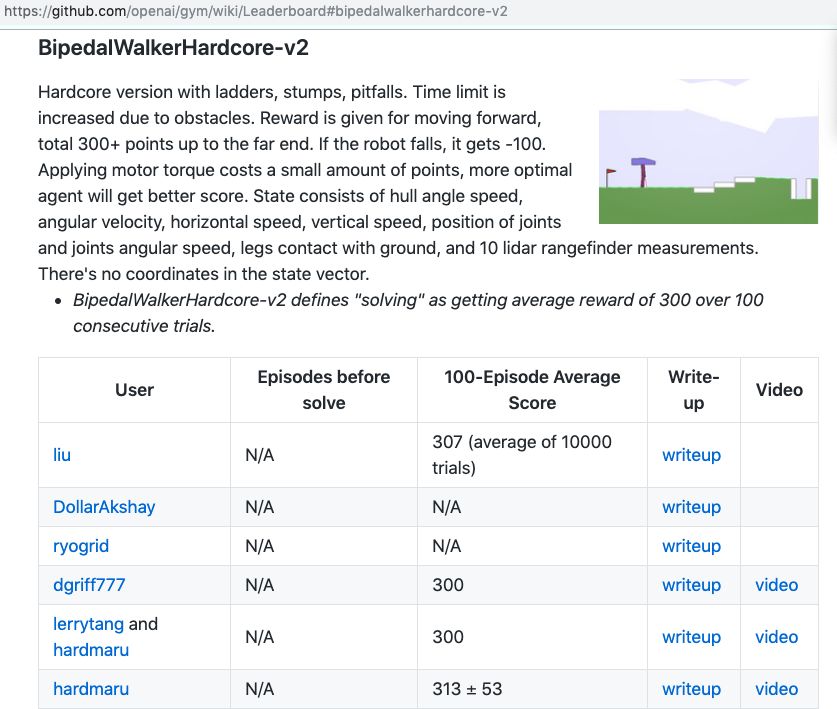 https://github.com/openai/gym/wiki/Leaderboard#bipedalwalkerhardcore-v2