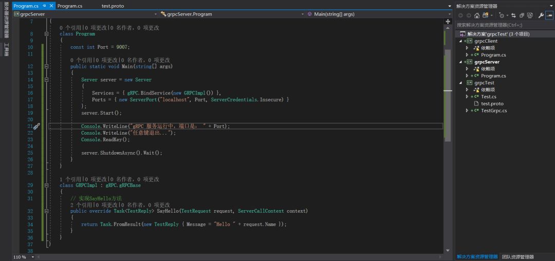 说下需要注意的两个点,就是客户端和服务端都需要引用生成的grpc文件