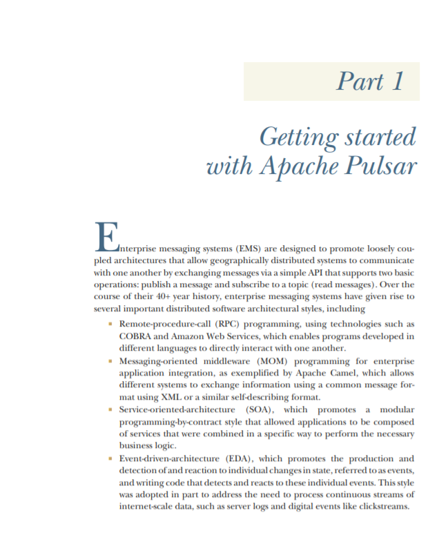 Apache Pulsar in Action教你使用Pulsar构建可扩展的流消息传递系统。您将从企业消息传递的快速介绍开始,并发现Pulsar的独特优势。下面是清晰的解释和引人入胜的示例,您将使用Pulsar Functions框架来开发一个基于微服务的应用程序。真实的案例研究说明了如何实现最重要的消息传递设计模式。