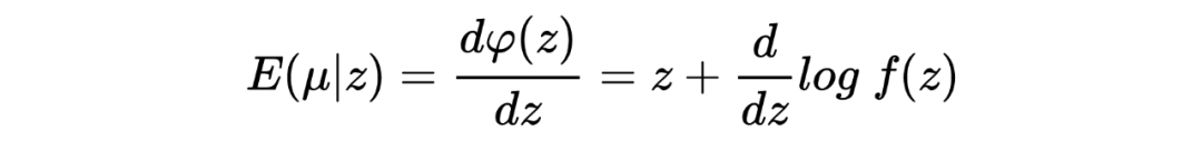 其中 是 的边缘分布。 很明显,Tweedie's formula 给出的估计中第一项就是 MLE 的估计,而第二项可以被视为经验贝叶斯在 MLE 估计的基础上做的贝叶斯修正。 我第一次看见这个结论的时候,除了 amazing 没有别的词可以形容了。这个公式意味着:在当前考虑的推断场景下,不对先验做形式上的要求,只要其存在,我们就可以求出后验分布的期望,是不是很神奇? Tweedie's formula 到底是怎么得到的呢?