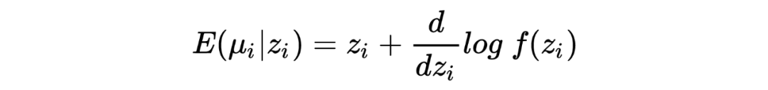 ,,我们希望从观测值 中估计 。 在推导 James-Stein estimato 的过程中,我们假设了先验是正态分布: ,在利用观测数据估计了其中的参数 后最终写出了 的后验分布并用其期望作为估计值。 然而在 Tweedie's formula 中,不对先验的形式做特殊要求,只假设其存在:,目标同样是求 后验分布的期望。Tweedie's formula 给出的后验分布的期望为:
