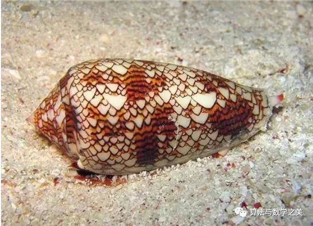 织锦芋螺(Conus textile)的花纹神似Rule 30的结果