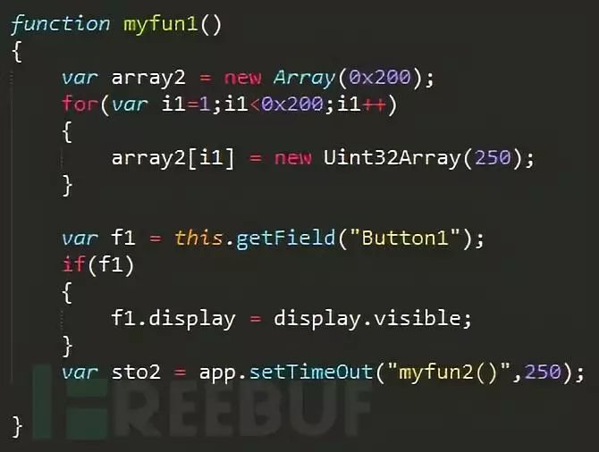 6. 随后 JavaScript 代码攻击 Adobe Reader 的 JavaScript 引擎;