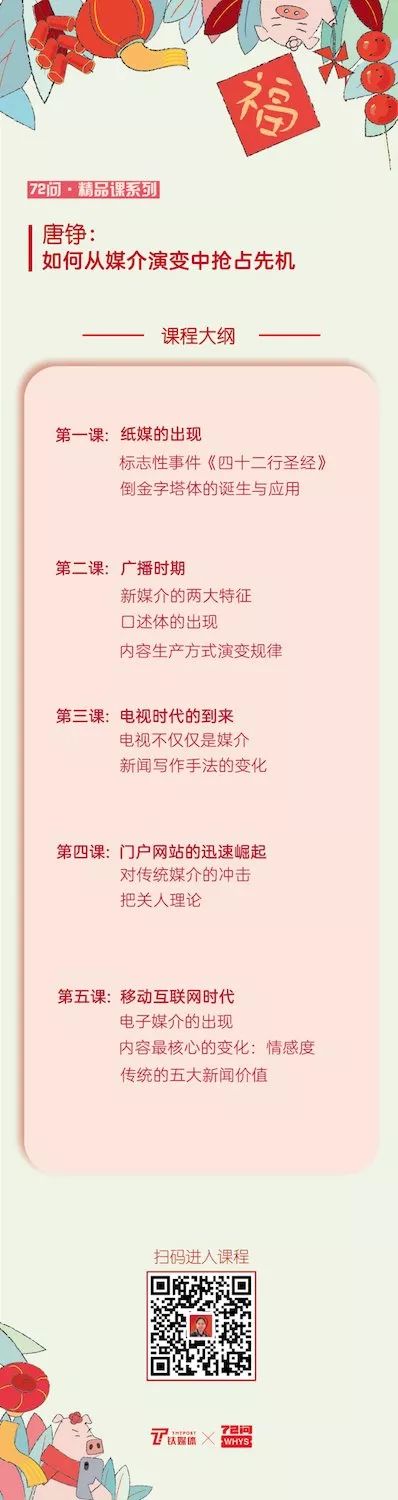 新年快乐!!春节期间,72问邀请业内顶级师资,四课让你成为一名优秀的媒体人,点击阅读原文,进入【72问春节特辑之未来媒体】