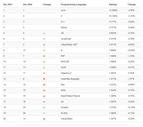 Top 10 编程语言 TIOBE 指数走势(2002-2016)