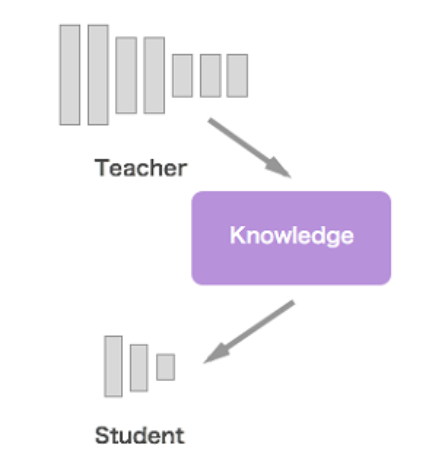 顾名思义,知识蒸馏是把知识浓缩到“小”网络模型中。一般情况下,在相同的数据上训练,模型参数量较大、计算量大的模型往往精度比较高,而用精度高、模型复杂度高的模型即Teacher网络的输出训练Student网络,以期达到使计算量小参数少的小网络精度提升的方法,就是知识蒸馏。