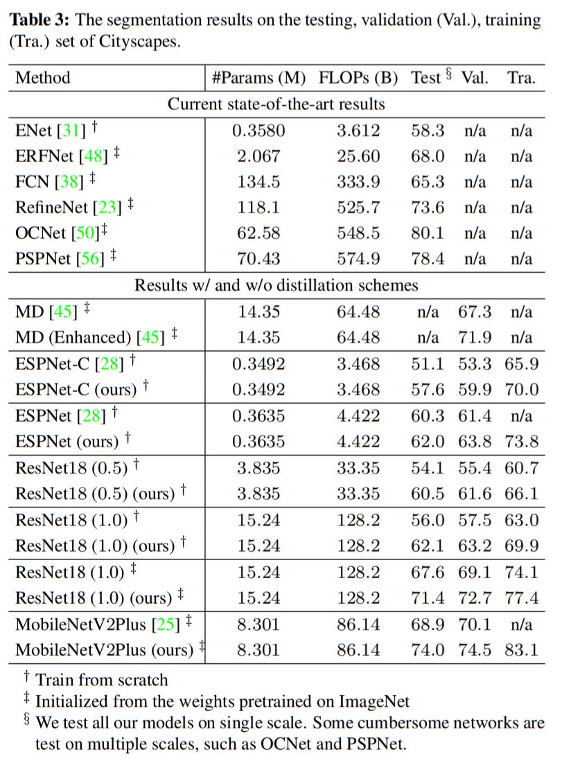 值得一提的是,该文很显然不仅对语义分割网络的知识蒸馏有借鉴意义,做深度估计、光流计算等像素级预测任务都值得参考。