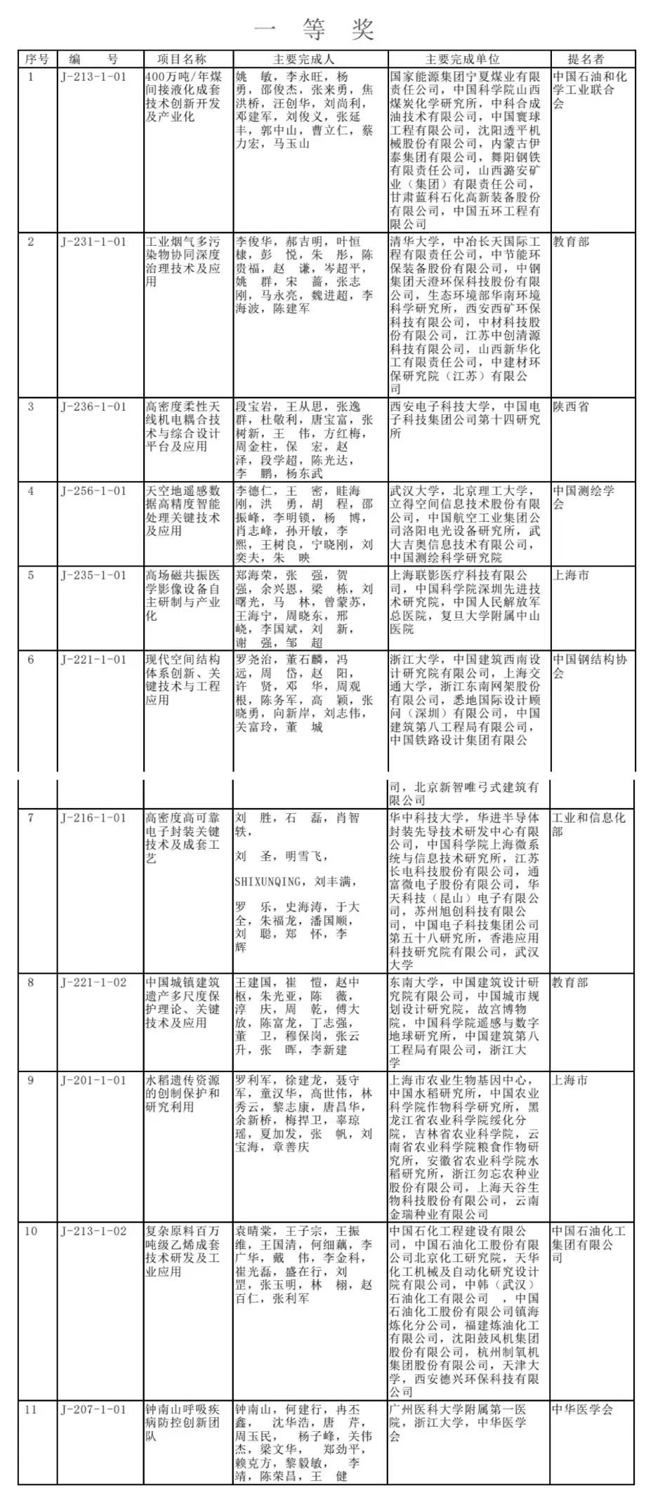 本次国家科学技术进步奖 157 项,其中一等奖 18 项(通用项目 10 项,专用项目 7 项,创新团队 1 项)。该奖项涵盖多个领域,从与人民息息相关的呼吸疾病研究、水道研究到工科精细化相关的研究再到广义的城镇建筑保护、遥感技术都有所涉及。