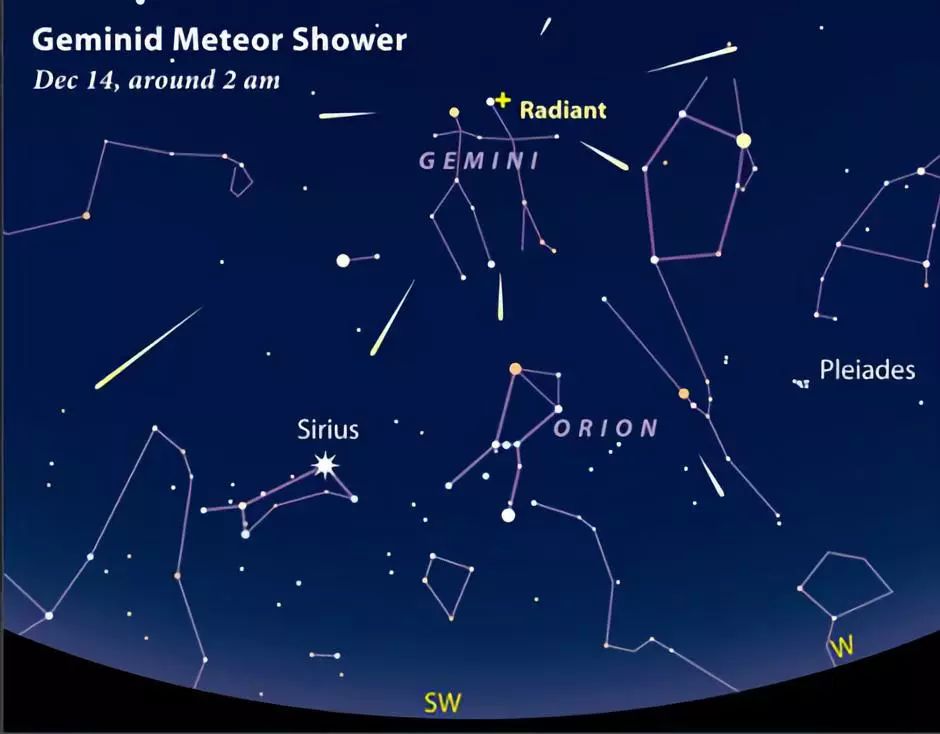 双子座流星雨一直是年度热点流星雨,今年极大值在12月13日和14日左右。刚入夜时流星雨少且稀疏,随着夜色深入,流星雨渐渐密集起来。晚上8点左右是最佳观测时间。北半球非常适合观测,但南半球也能看到。名叫法厄同3200(3200 Phaethon)的活跃岩质小行星就是双子座流星雨的母体。