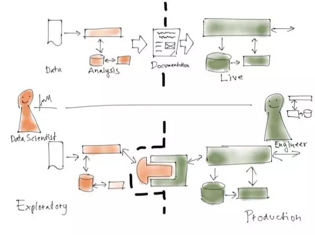 那么,我们如何让数据科学家和开发人员之间的合作对双方都最有利?第一反应可能是把二者分开。例如,彻底分开代码库,让数据科学家独立工作,制定规范文档,然后由开发人员加以实现。这种方法可行,但效率很低,而且容易出错,因为重新实现可能引入错误,尤其是在开发人员不熟悉数据分析算法的情况下。另外,进行外部迭代以改善整个系统,也取决于开发人员是否有足够的能力来实现数据科学家的规范文档。
