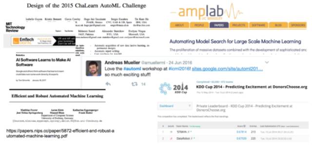 越来越多的社区开始创建各种工具来自动化上述及其他机器学习的工作流程。包含了类似范式的概念,这些流程常常被称为自动化的机器学习(以下简称为AML)
