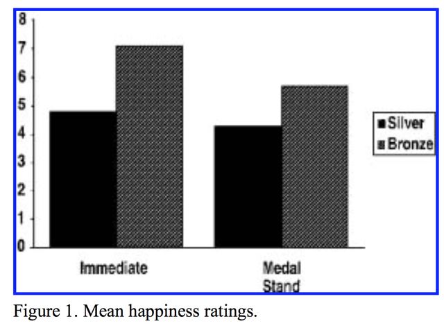 [1].Medvec, V. H., Madey, S. F., & Gilovich, T. (1995). When less is more: counterfactual thinking and satisfaction among Olympic medalists. Journal of personality and social psychology, 69(4), 603.