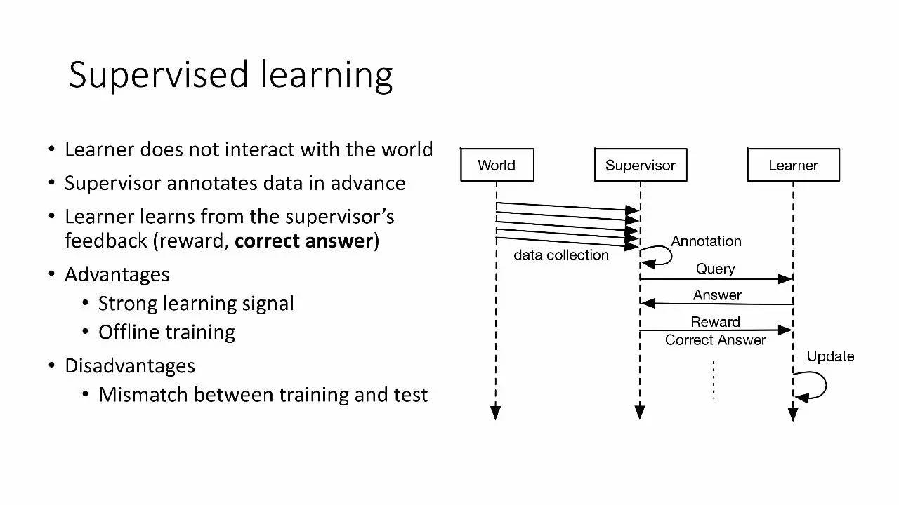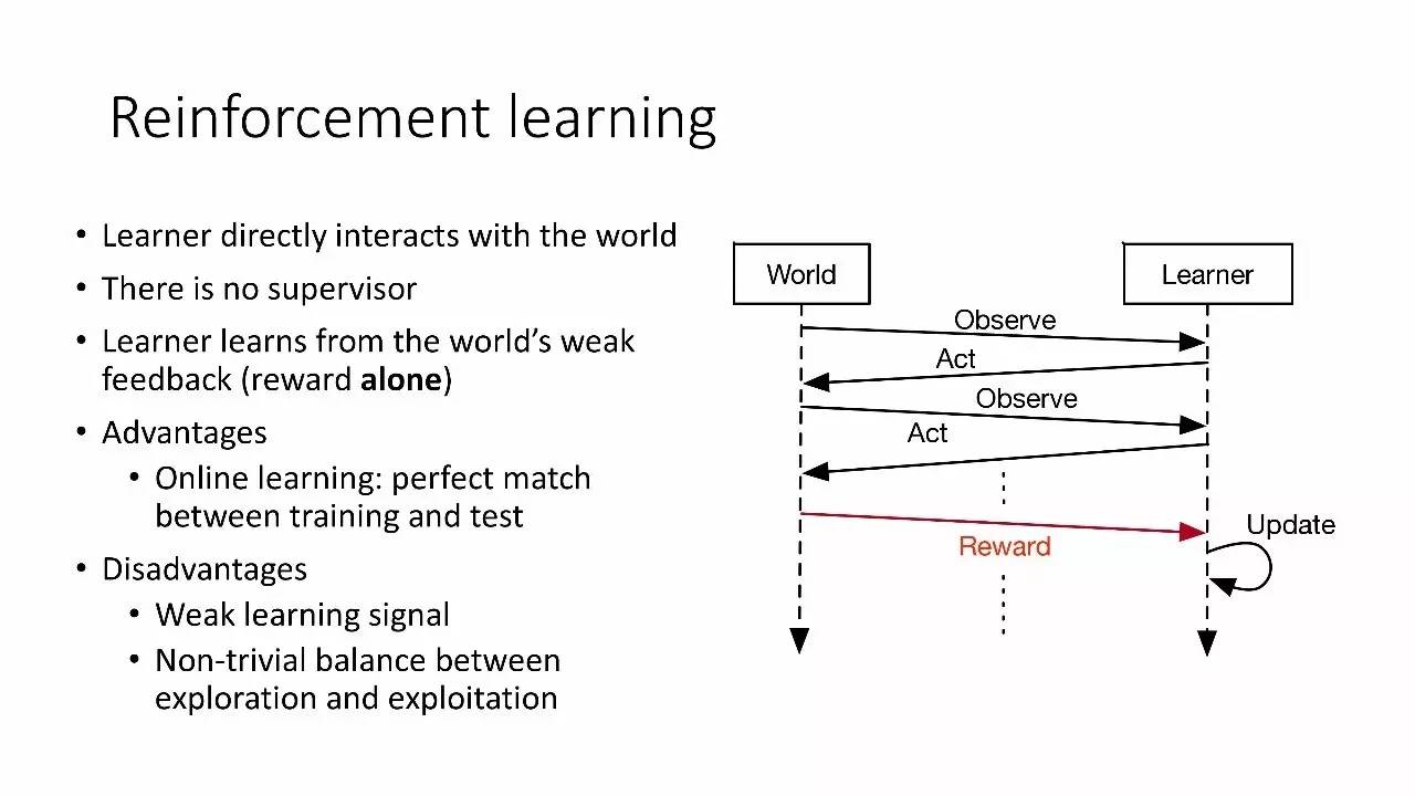 学习者从监督者的反馈(奖励,正确答案)中学习