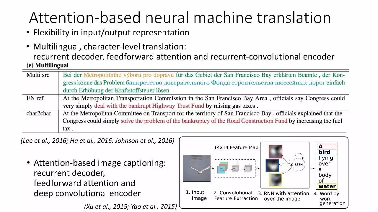 多语言、character-level的翻译:recurrent decoder、feedforward attention、 recurrent-convolutional encoder