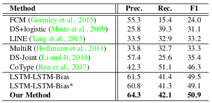 表4 在NYT上与以前最先进的方法进行比较