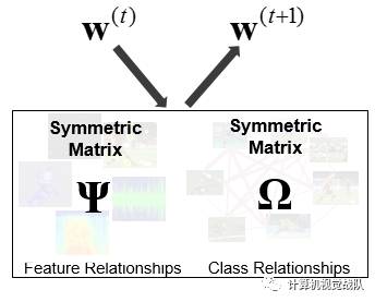 2、有一个循环,预测误差和更新权重矩阵,更新特征及类别关系Ω和Ψ。