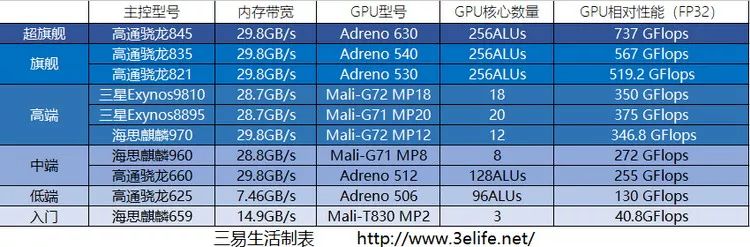 同样的道理,在手游领域就更好理解了:我们整理了时下几款流行手机主控的GPU规格列表,按照其3D游戏相对性能从高到低的顺序排列。从这张表中,大家可以一目了然地看出,从最顶级的超旗舰、到最入门的低端主控,3D性能之间的差距远比一般人想象的要大得多。最夸张的情况下,前者的3D性能有后者的18倍还多一点。