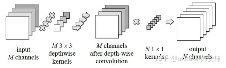 左边每个通道独立做卷积,右边1x1卷积相当于加权