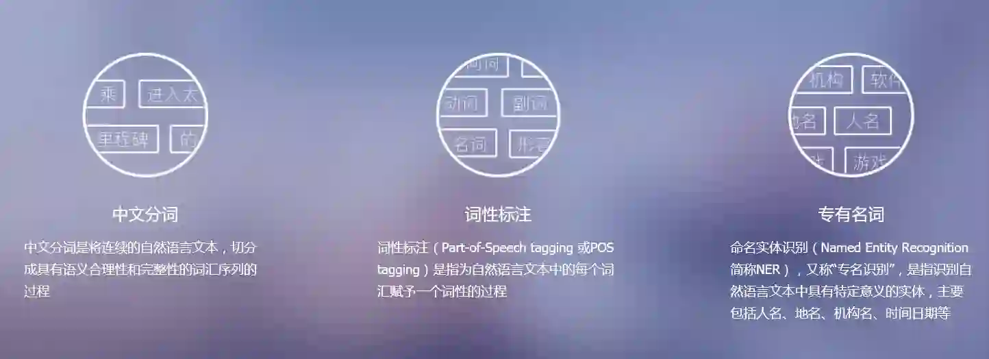 百度词法分析向用户提供分词、词性标注、命名实体识别三大功能。该服务能够识别出文本串中的基本词汇标注和词汇的词性,并进一步识别出命名实体,百度词法分析的算法效果大幅领先已公开的主流中文词法分析模型。